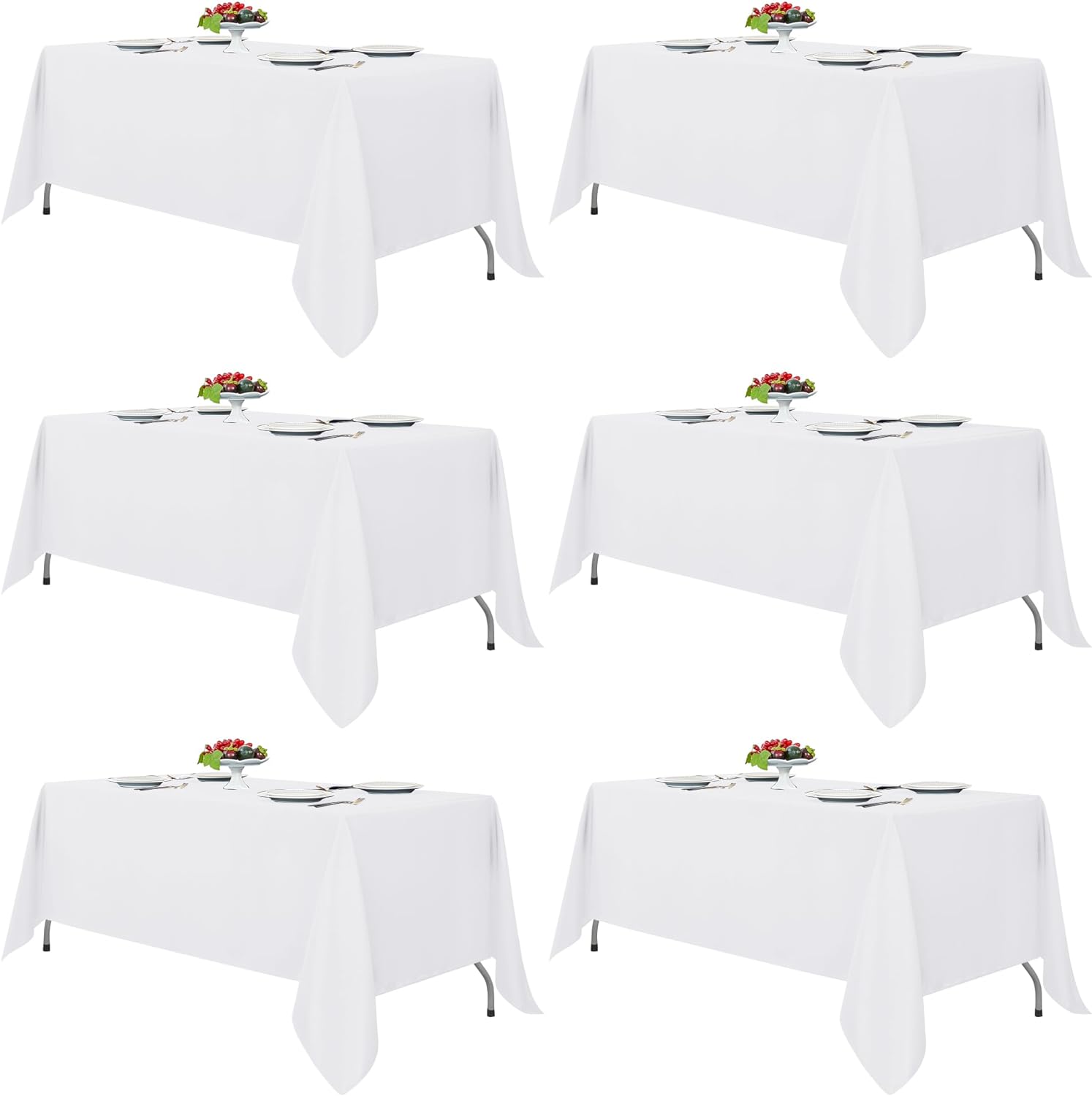 Fitable White Tablecloths for Rectangle Tables, 6 Pack – 70 x 120 Inches – Reusable and Washable Table Clothes for 6-8 Ft Tables, Polyester Fabric Table Covers for Wedding, Party, Banquet