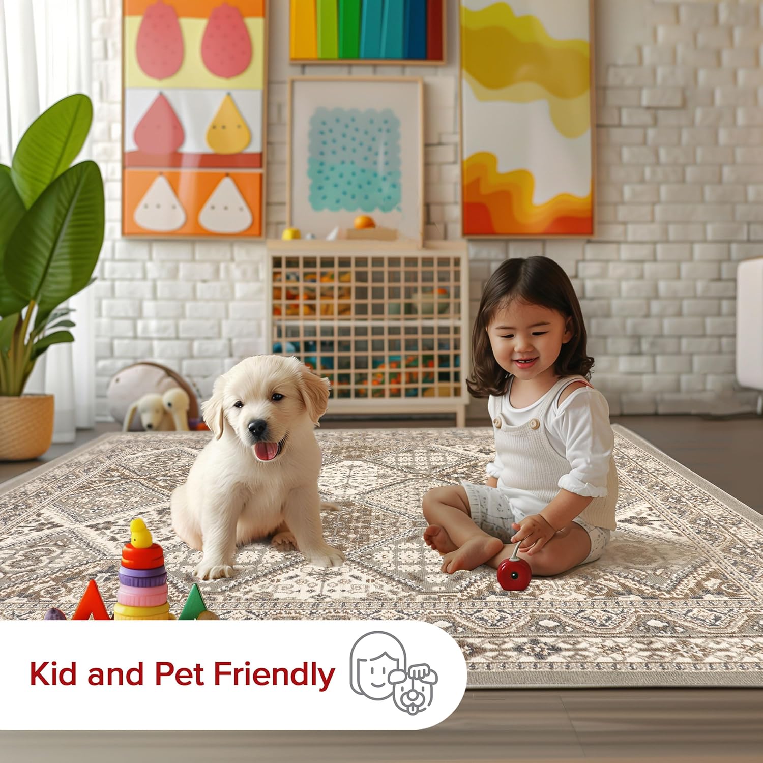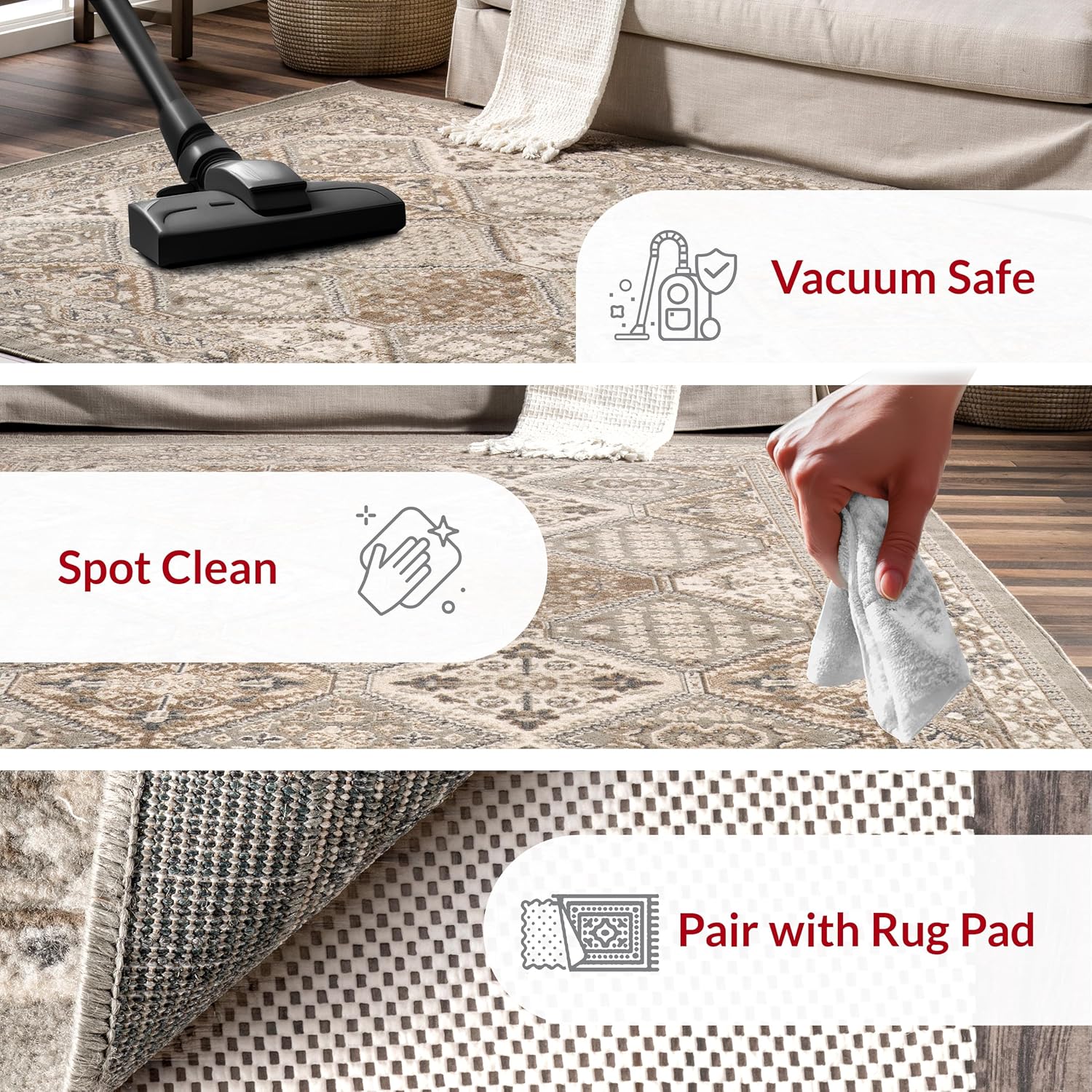 Measuring 9×12 feet, this rug provides ample coverage for larger rooms, adding warmth and comfort underfoot. Its versatile design and neutral color palette make it easy to incorporate into any existing decor, while its intricate tiled pattern adds a unique and eye-catching element to your space.