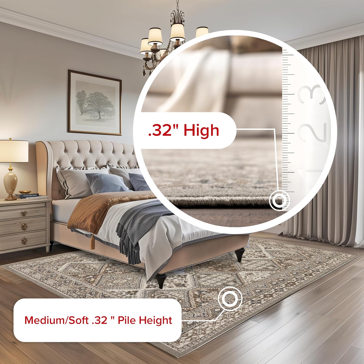 nuLOOM 9×12 Becca Traditional Tiled Area Rug, Taupe, Faded Transitional Design, Stain Resistant, For Bedroom, Dining Room, Living Room, Hallway, Office, Kitchen, Entryway