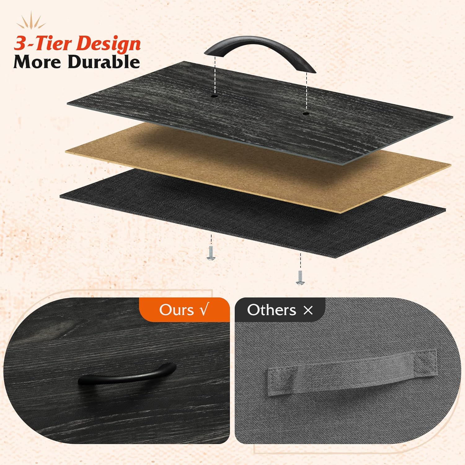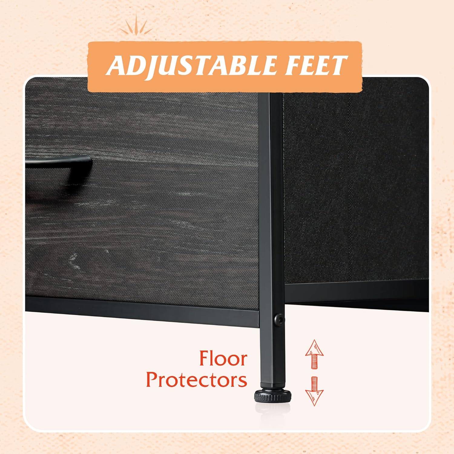 With five spacious drawers, this fabric dresser provides ample storage space for clothing, accessories, linens, and more. The included fabric bins offer even more organization options, making it easy to keep your belongings tidy and easily accessible.
